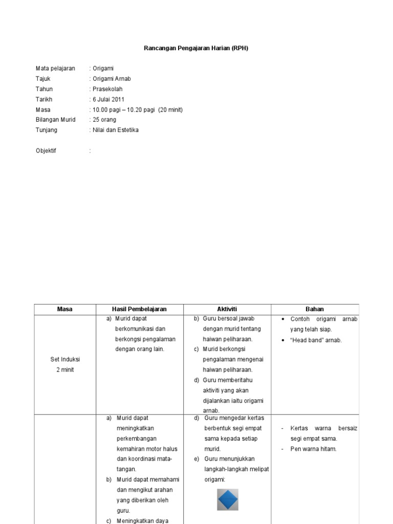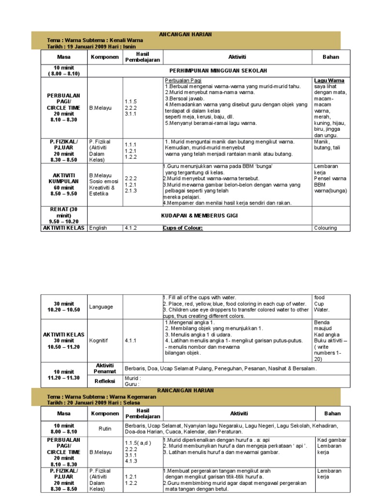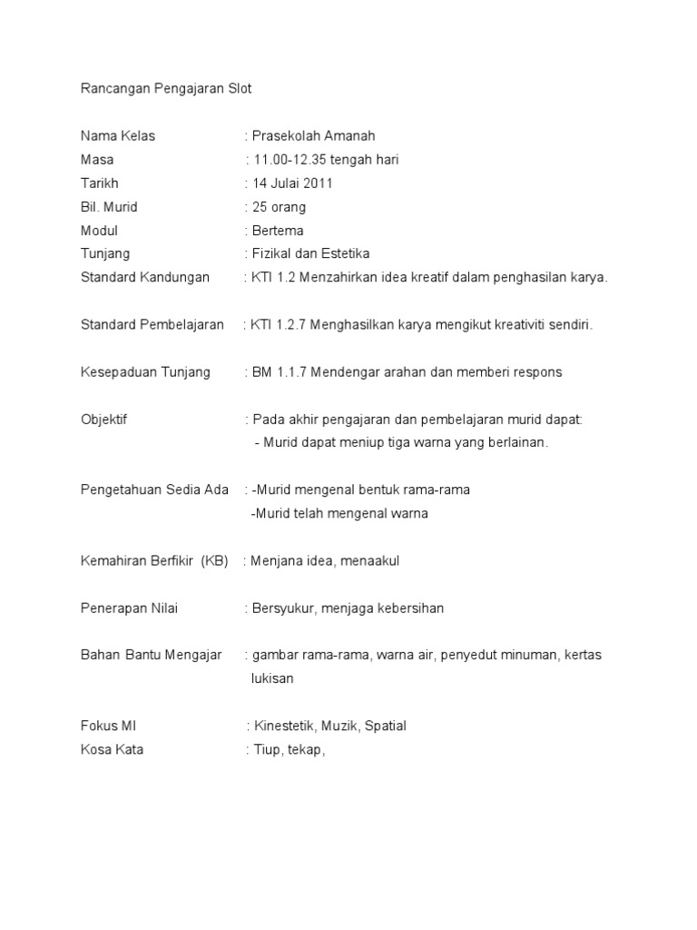 Contoh Rancangan Pengajaran Harian Prasekolah Pdf