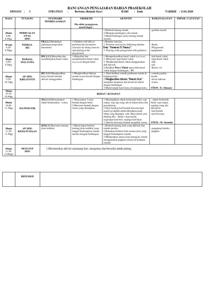 Rph Prasekolah Tema Rumah Saya Tunjang Sains Dan Teknologi. Contoh rancangan pengajaran harian arra asri. Dokumen ini merupakan koleksi RPH saya semasa dalam latihan mengajar.